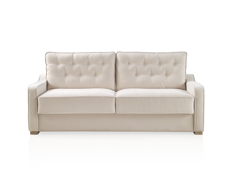 La fonction convertible est intégrée au canapé grâce à un mécanisme de lit pliant. Le couchage est équipé d’un matelas en mousse haute densité complété par une couche viscoélastique, permettant de transformer le canapé en lit de manière simple, tout en conservant une esthétique nette en position fermée.