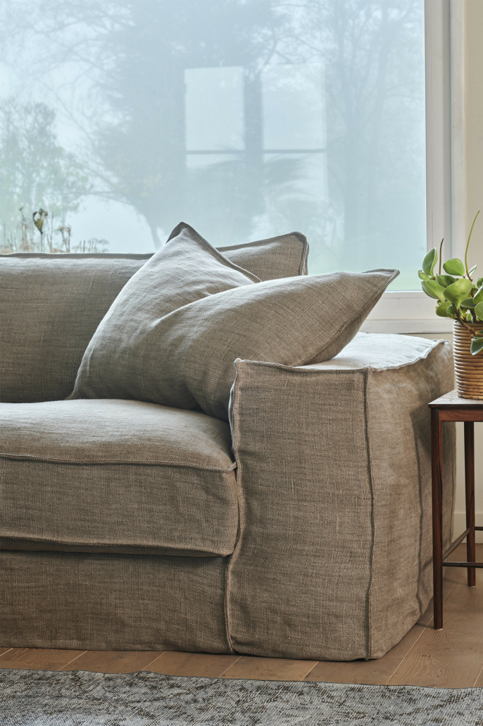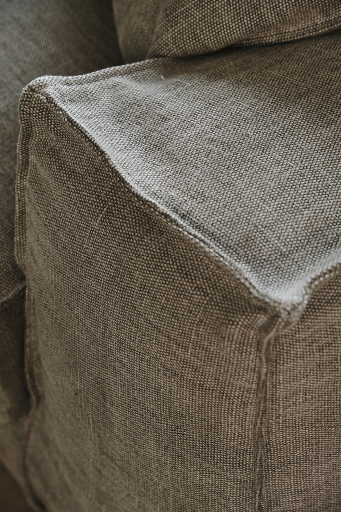 Confectionné en lin, une matière noble et respirante, le Cologne séduit par son toucher doux et son aspect délicatement froissé. Il est entièrement déhoussable, ce qui facilite son entretien tout en prolongeant sa durabilité.