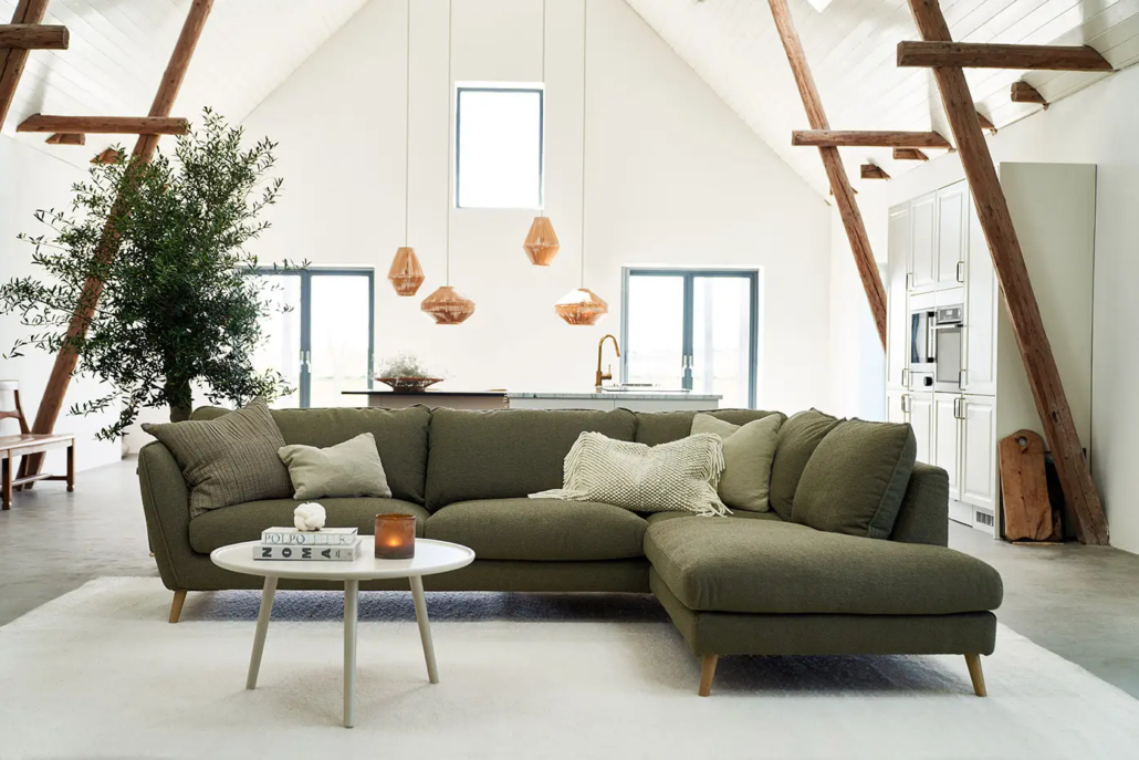 À la fois élégant et léger, ce style est créé par la surface avant supérieure caractéristique du meuble ainsi que par son coussin d’assise relativement fin. Mais ne laissez pas cela vous duper, ce sofa ne manque absolument pas de douceur. Grâce à une gamme inspirante de modules, il offre des possibilités infinies et peut accueillir des pieds en bois en forme d’entonnoir.